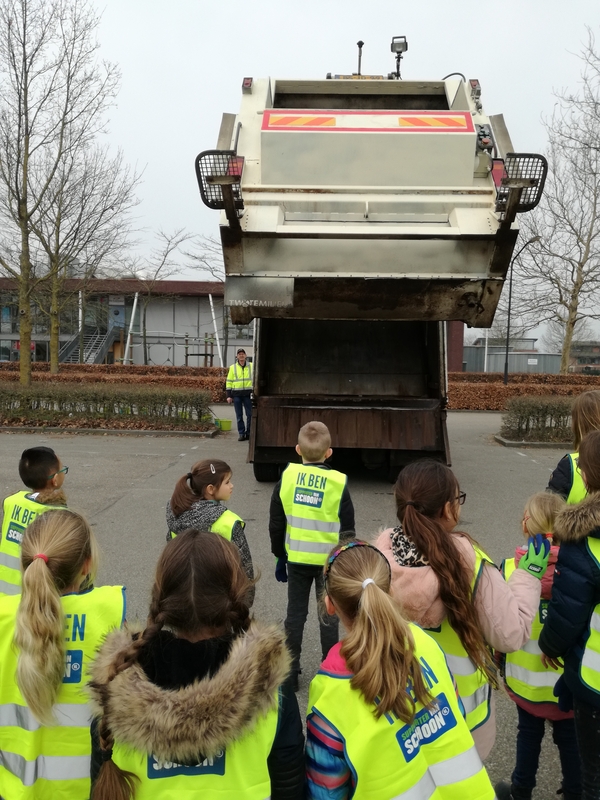 In de klas van groep 3a is door de gemeente Oss een workshop over zwerfafval gegeven. Na een informatief gedeelte in de klas zijn de kinderen naar buiten gegaan. Ze hebben een demonstratie gekregen van de werking van een vuilniswagen. En vervolgens hebben ze met emmers en knijpstokken een deel van de parkeerplaats opgeruimd.