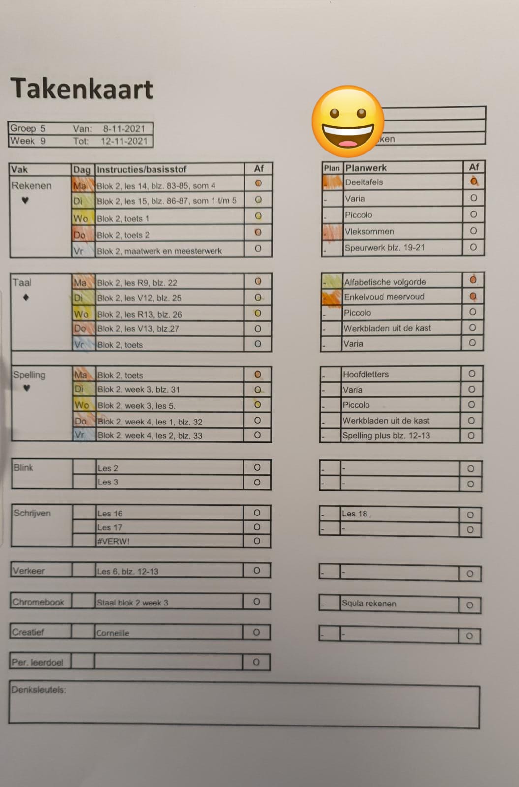 Bij je takenkaart moet je binnen een week je planwerk inleveren is je eigen verantwoordelijkheid.